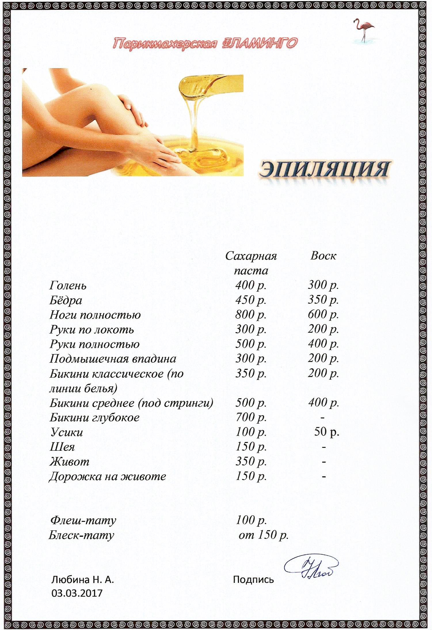 • Эпиляция зоны глубокого бикини осуществляется только сахарной пастой, остальные зоны — по выбору клиента.